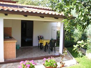 Modern furnished studio apartment 303 located on the ground behind the family home, surrounded by silence and peace. The apartment consists of a bedroom with a double bed for two people and a fully equipped outdoor kitchen, fully equipped with modern bathroom and a spacious terrace overlooking the park. There are extra beds. Parking for your car is reserved to a closed and private parking in front of the house. This apartment is equipped with digital satellite TV.